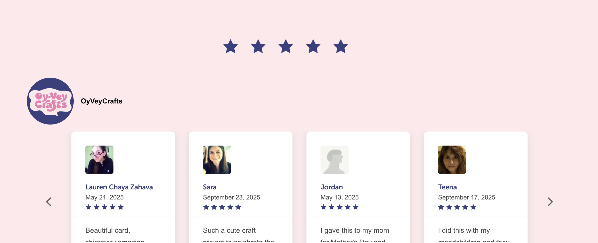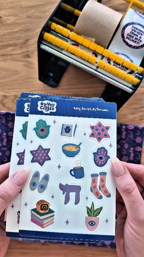 I began Oy Vey Crafts as a passion project while on maternity leave with my second child. I wanted to blend my love for creating playful, emotive imagery with my passion for finding new ways for my family to experience Jewish life.